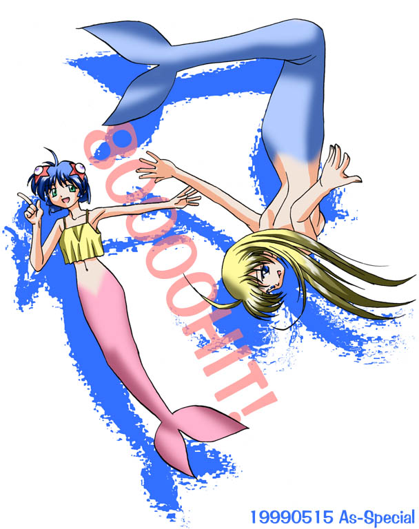 As_Present33nskw.jpg(1999/05/15) 毎度毎度頭が下がる思いのAs-Specialさんからのお祝いCG。 80000HIT記念はサシミ&ツナミの人魚姉妹で頂きました。 浅い水を感じさせる影が金魚すくい(人魚すくい?)みたいで 面白いですね〜。ところでサシミの胸は描き忘れ?それとも(*^_^*) いやどうもありがとうございました〜。 |